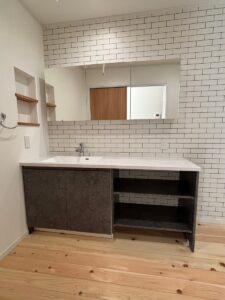 奥様は、食器棚や洗面台、パントリー収納など、水回りを中心にこだわられました。