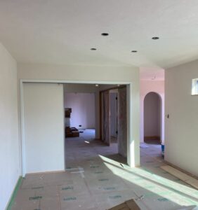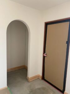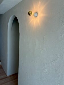 アーチの入口を作り漆喰で仕上げました。照明器具の印影がとても綺麗です。