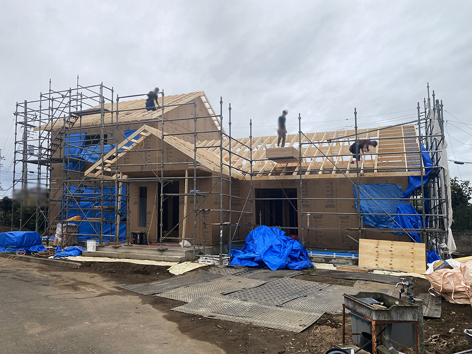 「断熱等級7 自然素材と漆喰の家 (常総市)」の建て方がおこなわれました。