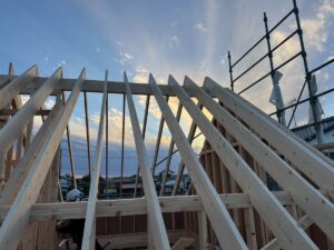 いつも通り、屋根のルーフィング工事まで終えて建て方終了です。