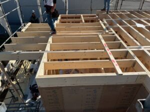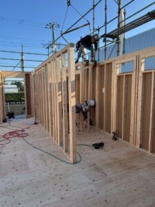 大型パネルで建てることにより雨に濡れるリスクを低くし2日で建てていきます。