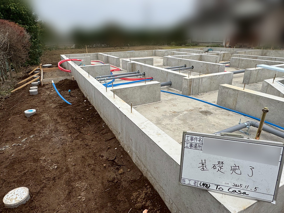 「自然素材と漆喰 大屋根の家(取手市)」の、基礎工事の様子です。