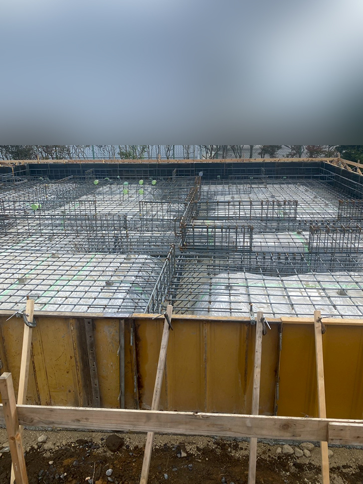 最近では基礎の立上り部分が無いお家も多いですが、当社は屋根から柱や壁、柱や壁から基礎にと、荷重に耐えられるように考え、基礎の立上りは細かく考えて設計をしております。